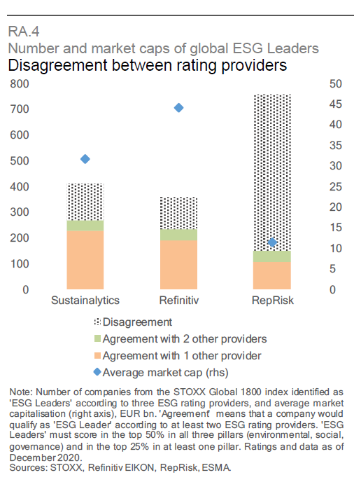 Quali sono i problemi legati alla trasparenza individuati da Esma? In primo luogo, l’assenza di una definizione comune impedisce alle autorità e agli investitori di mappare il mercato, lasciando la definizione di rischio Esg ai rating provider. In secondo problema riguarda la trasparenza delle metodologie che stanno alla base dei rating Esg. Per produrre rating, i provider usano metodologie proprietarie in linea con i propri obiettivi e definizioni. Il terzo rischio origina dalla competizione nel mercato dei rating Esg. Se la recente ondata di acquisizioni può aiutare in parte a ridurre l’eterogeneità , conduce a una maggiore concentrazione del mercato in pochi grandi provider. «Nel medio termine, il rischio è ricreare una situazione di oligopolio simile a quella del mercato dei rating di credito». Infine, l’ultimo rischio può originare dalla coesistenza del servizio di rating Esg con altre aree di business. L’Esma non rileva tanto un problema di “rating shoppin” dal momento che predomina un modello in cui i servizi sono acquistati prevalentemente dagli investitori. Invece, i conflitti di interesse possono per l’Autority emergere nel contesto di altri prodotti o servizi venduti agli investitori. «Anche se il servizio di rating Esg è tipicamente portato avanti in entità legali separate – rileva l’Esma – interessi commerciali e requisiti regolamentari su altre attività di business potrebbero condurre a un conflitto di priorità ».