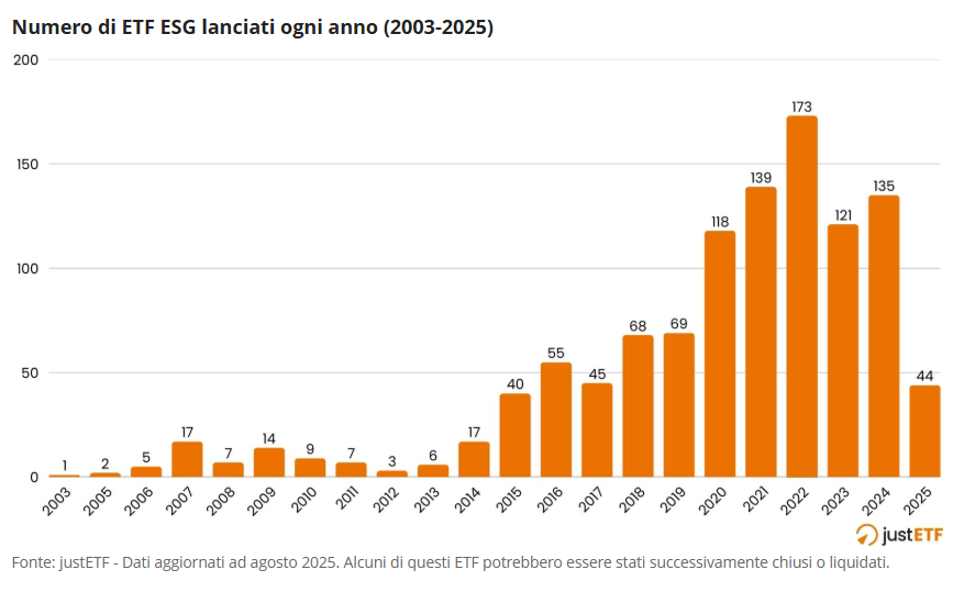 L’offerta di Etf azionari Esg in Italia conta oggi più di 700 prodotti, con oltre la metà lanciati dopo il 2020, ma il ritmo delle nuove emissioni è rallentato dopo il picco del 2022 e diversi strumenti sono stati chiusi o accorpati.