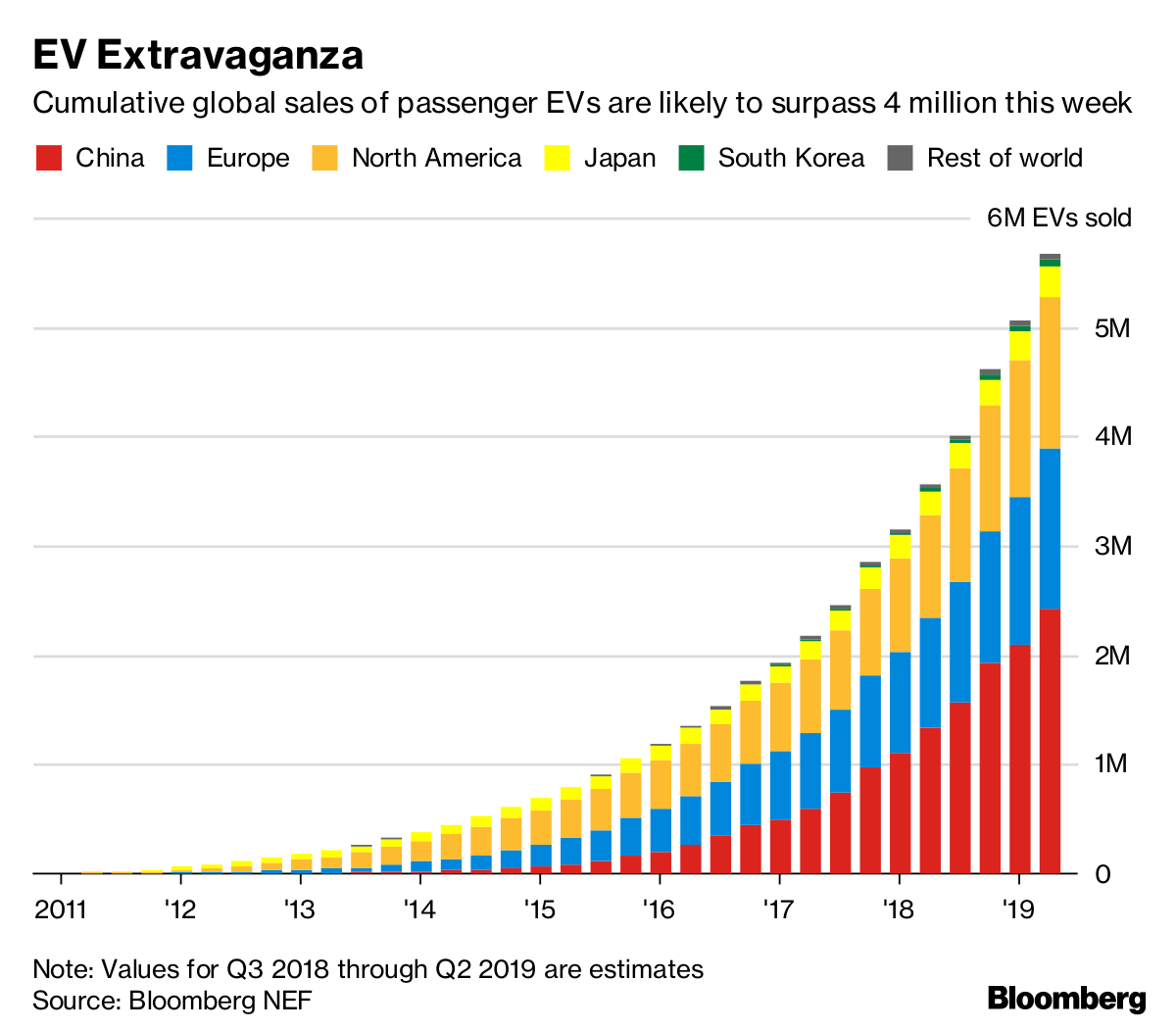 L’ultima analisi pubblicata da Nathaniel Bullard su Bloomberg non lascia spazio all’interpretazione: il settore delle auto elettriche sta esplodendo. In Norvegia, per esempio, le vendite di questi veicoli ci hanno messo circa 10 anni per raggiungere il 6 per cento del totale, mentre negli ultimi 5 anni la quota di mercato è balzata al 47 per cento.