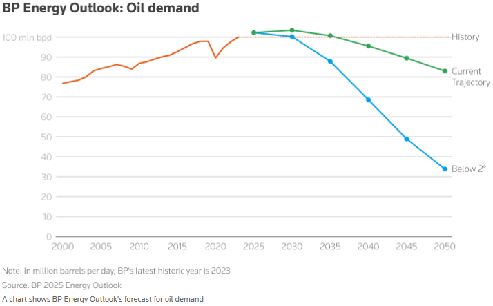 BP, nel suo ultimo Energy Outlook, ha rivisto al rialzo le previsioni sulla domanda globale di petrolio, stimando che continuerà a crescere fino al 2030, cinque anni oltre la precedente stima.