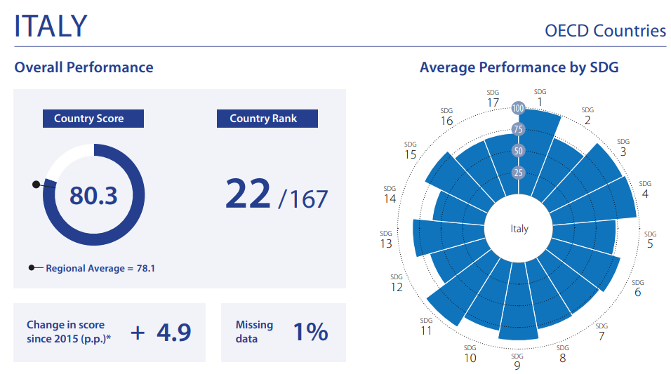 Il report analizza l’indice Sdg e, attraverso le Dashboard, fornisce una valutazione annuale dei progressi compiuti in materia di Sdg di tutti i 193 Stati membri delle Nazioni Unite.