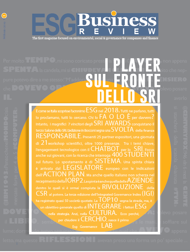 ETicaNews lancia ESG Business Review, il primo magazine cartaceo italiano dedicato esclusivamente agli Esg. A gennaio l’esordio. Due i numeri previsti nel 2019. Invio postale. Gratuito (richiedilo qui).